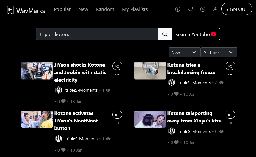 Like SubSearch this is something I made a long time ago and have been running in my own personal network for my own media library, and just adapted for online videos here where I largely mirrored my own internal workflow. The initial data on here was just importing the video bookmarks I already have.